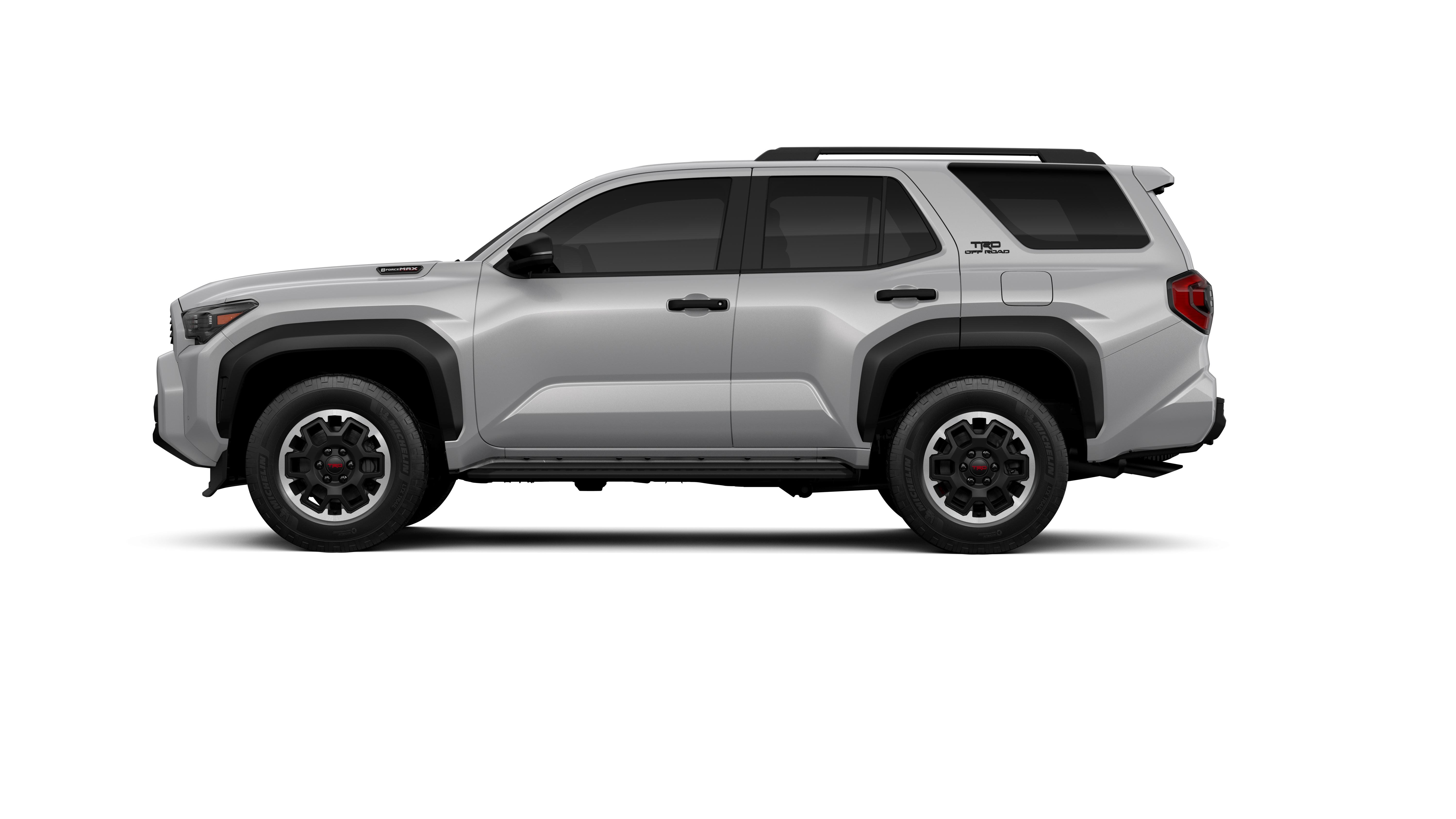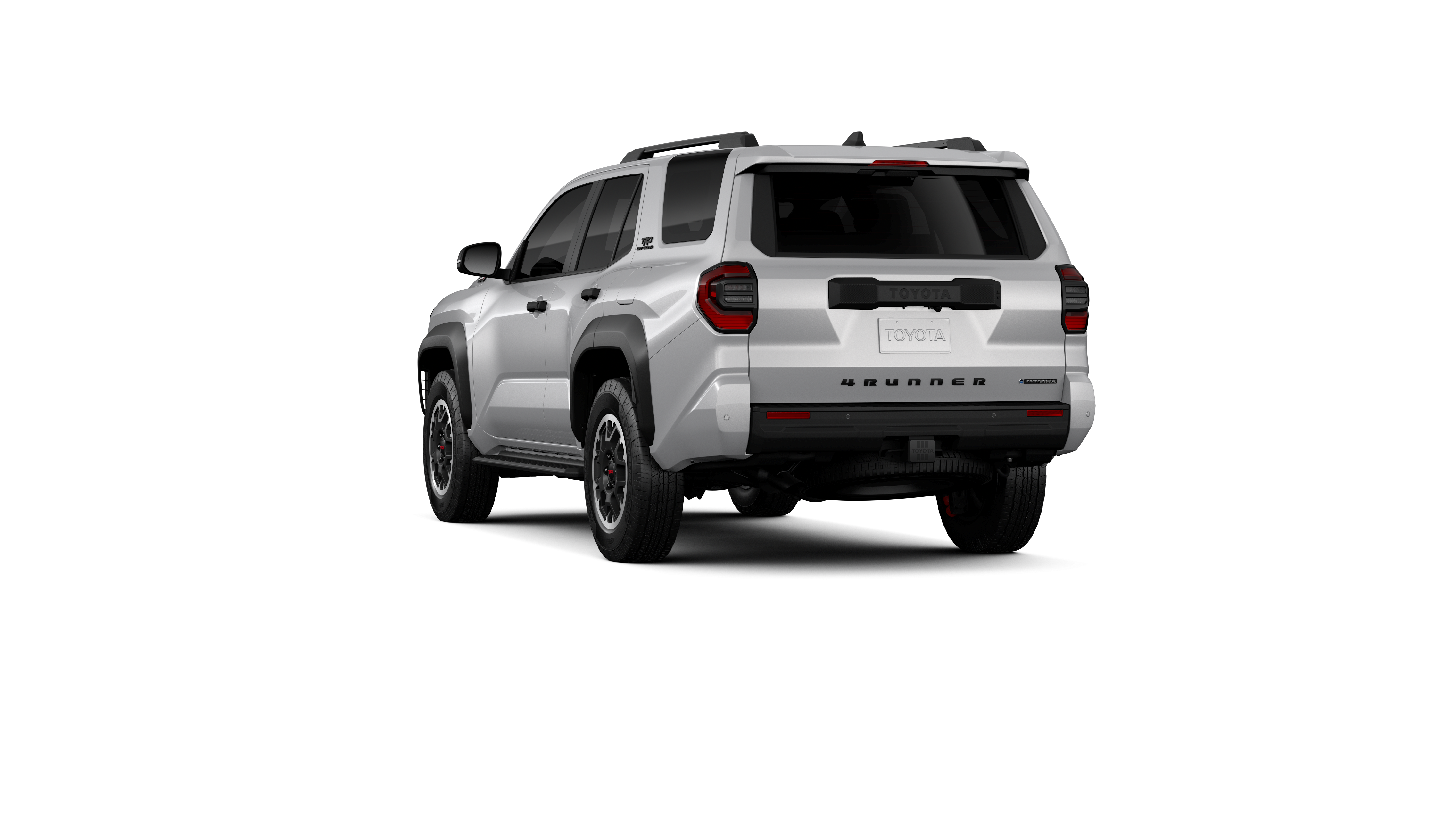 - Black honeycomb-style grille, mirror caps, door handles and overfenders; color-keyed rear spoiler; black "TRD OFF ROAD" and "4RUNNER" badges