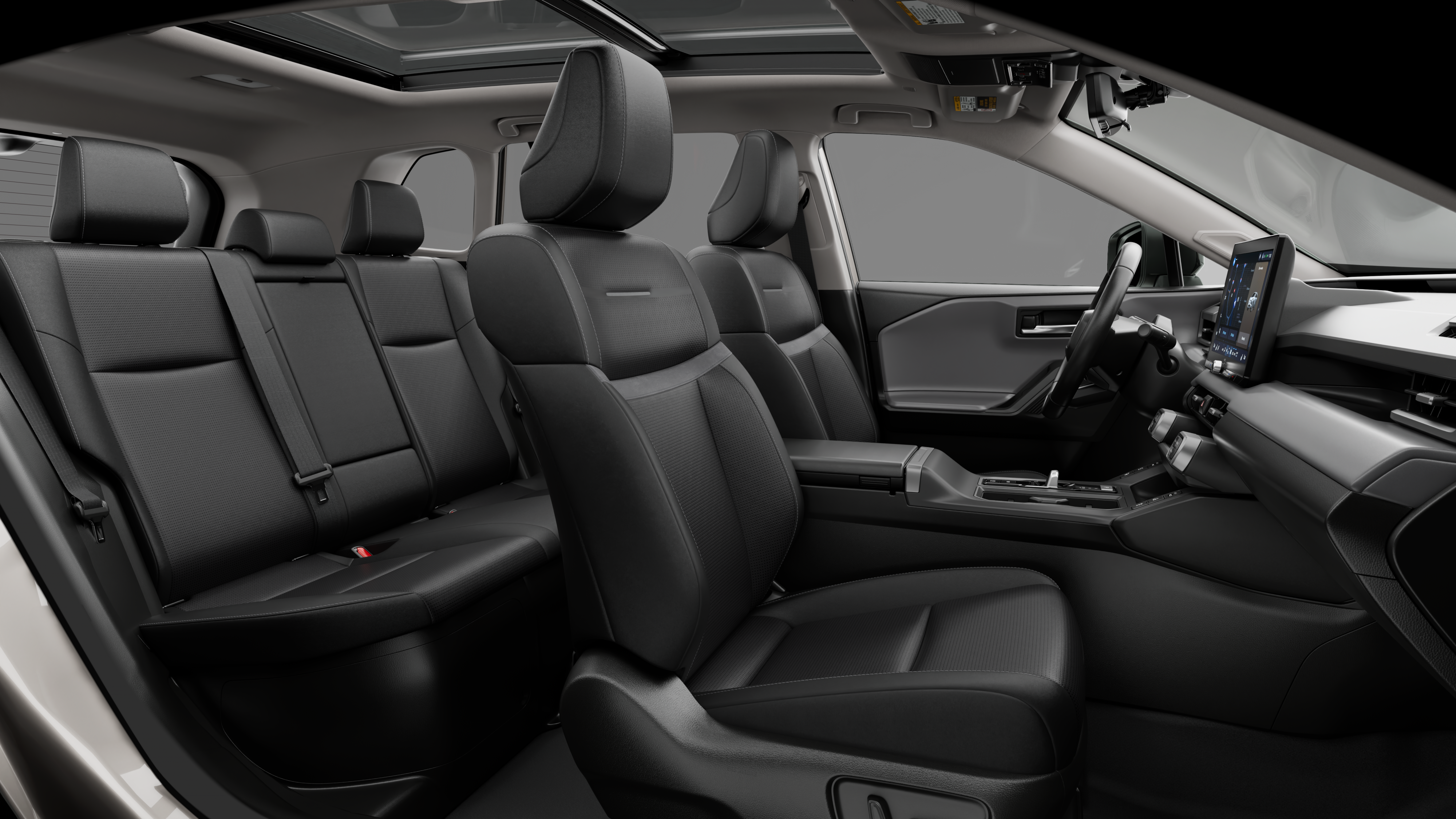 - Front and outboard second-row seatbelts with seatbelt pretensioners with force limiters